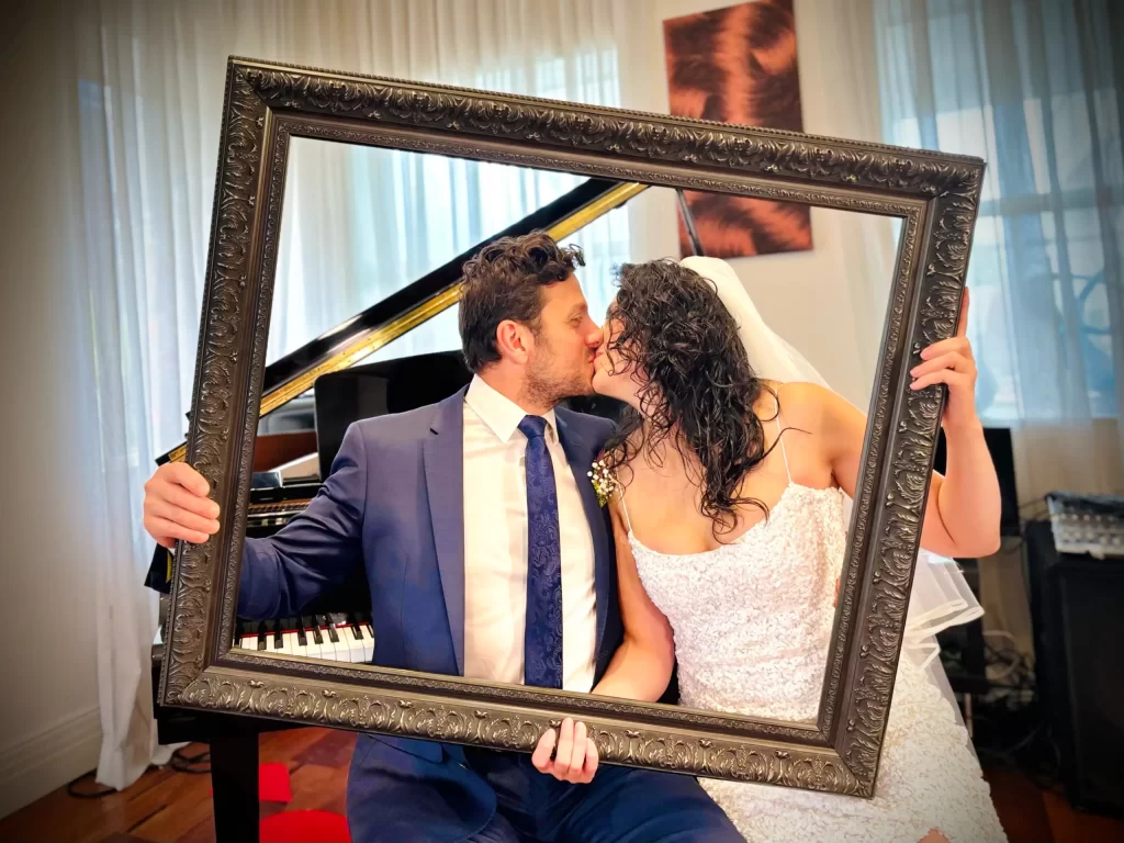 Complete with it’s black baby grand piano (encouraging visiting professional musicians to sit down and play!) and adorned with a few stunning international sculpture pieces and modern Indigenous art on the walls of the space, this classic ceremony room — with almost four-metre-high ceilings — has a warm and distinctly inviting atmosphere which caters to couples and families from all walks of life and from all around the world. And of course, not forgetting an open invitation to your four-legged pup best friends.